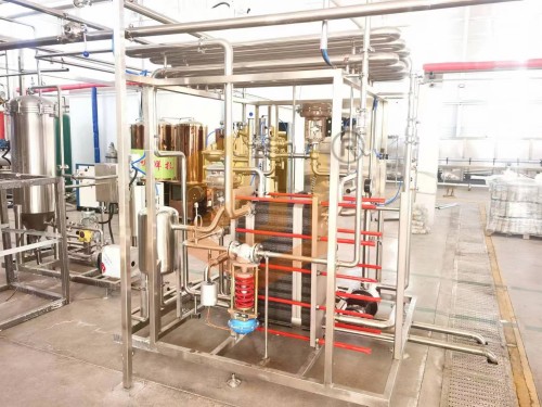 隨著啤酒行業(yè)規(guī)模不斷擴(kuò)大,技術(shù)水平不斷提高,啤酒品種不斷增多,原料、能源、運輸?shù)葍r格不斷膨脹。應(yīng)對市場,必須節(jié)能降耗,降低生產(chǎn)成本。在提高產(chǎn)品質(zhì)量過程中,啤酒的生物穩(wěn)定性與巴式滅菌的溫度有很大的關(guān)系。我公司在吸收消化國外先進(jìn)的啤酒殺菌技術(shù)基礎(chǔ)上研制生產(chǎn)了瞬時殺菌裝置。采用高效的板式換熱器實現(xiàn)啤酒與熱水的換熱,使啤酒瞬間加溫并經(jīng)過恒溫殺菌后再經(jīng)過冷媒介質(zhì)降至原有溫度。通過瞬間加溫、保溫和降溫的過程使啤酒完成巴氏殺菌,達(dá)到殺菌25pu值,并可使啤酒中的CO2含量和啤酒口味風(fēng)味保持不變。